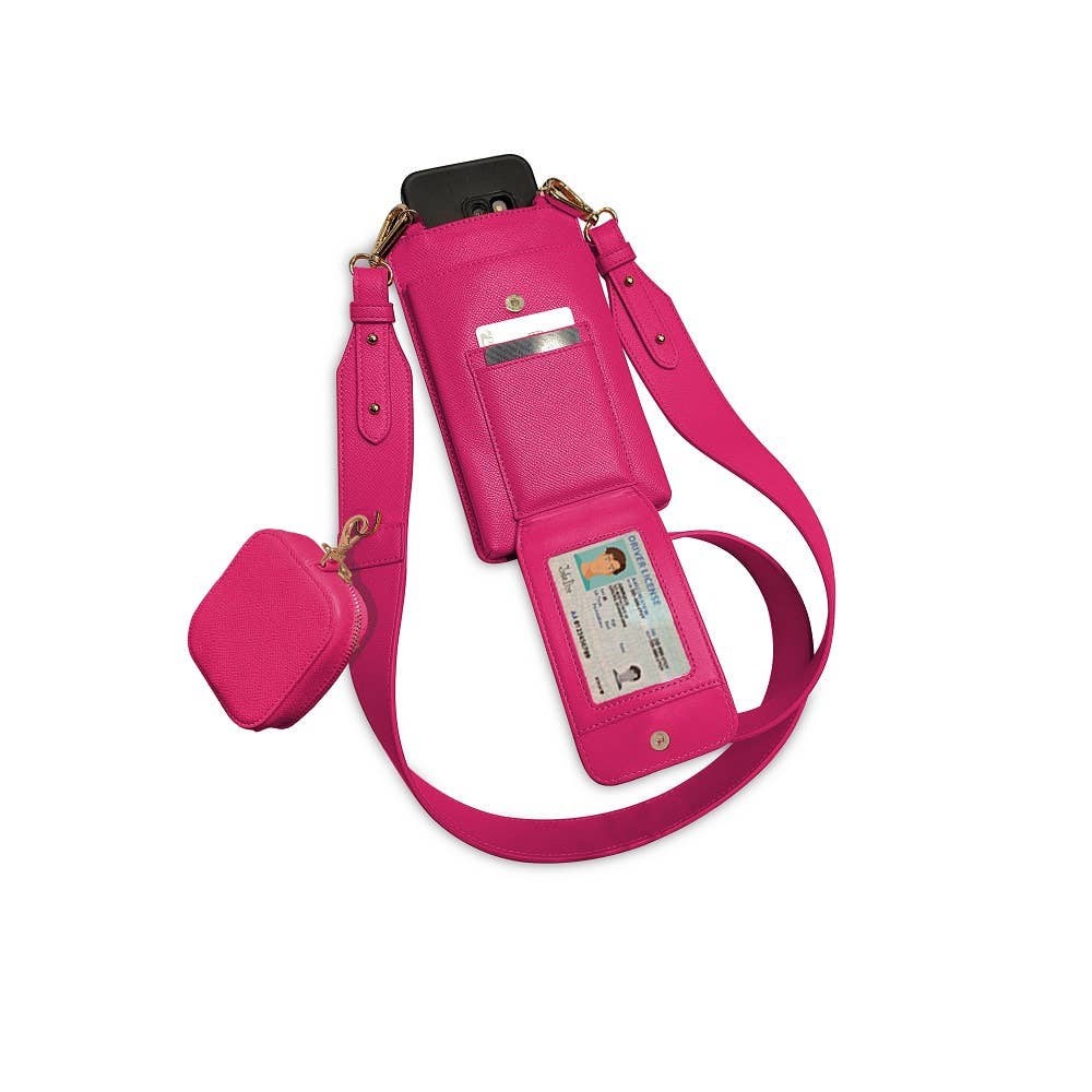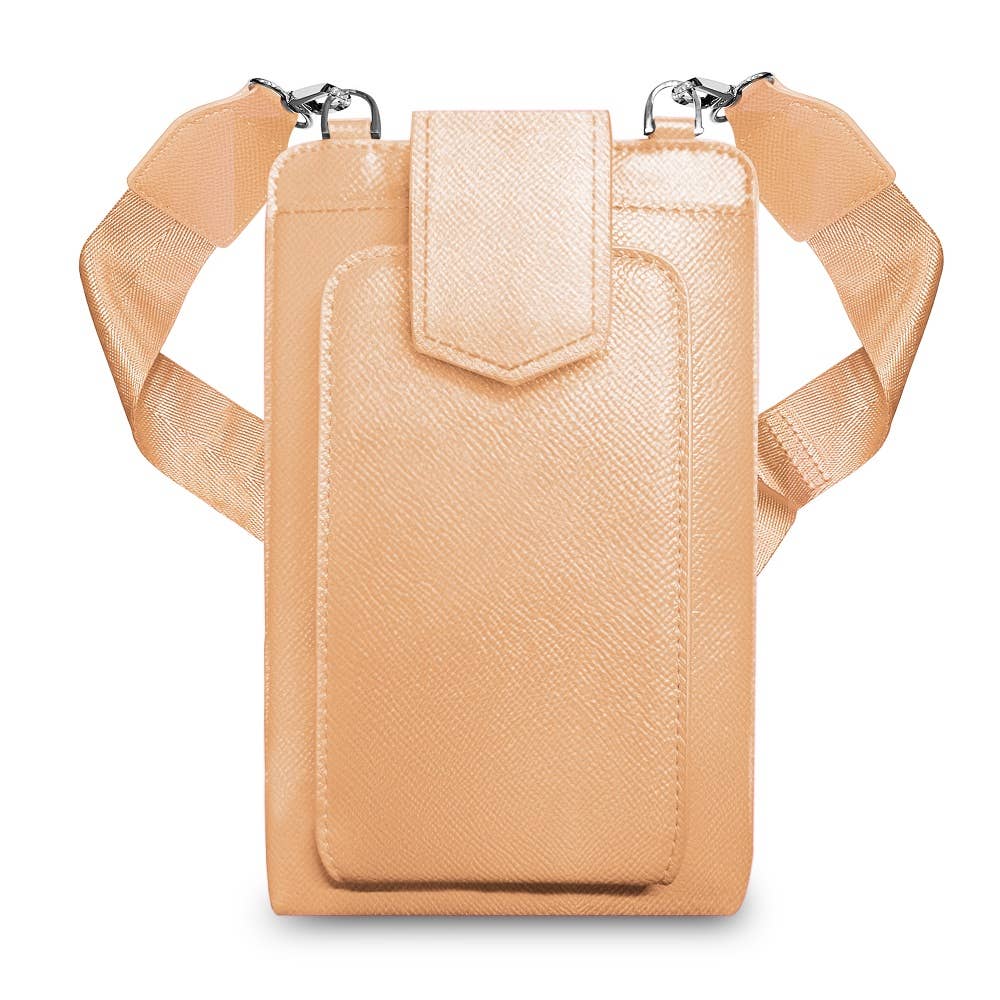 Designed with a sleek, contemporary look and packed with clever details, this little bag is more than just stylish. The built-in RFID-blocking technology helps shield your cards from electronic pickpocketing, while the clear touch-screen window lets you text, scroll, and check your phone without ever pulling it out. Inside, there’s room for your must-haves—cards, cash, and a few small extras—and the detachable strap means you can wear it as a crossbody or carry it as a clutch.