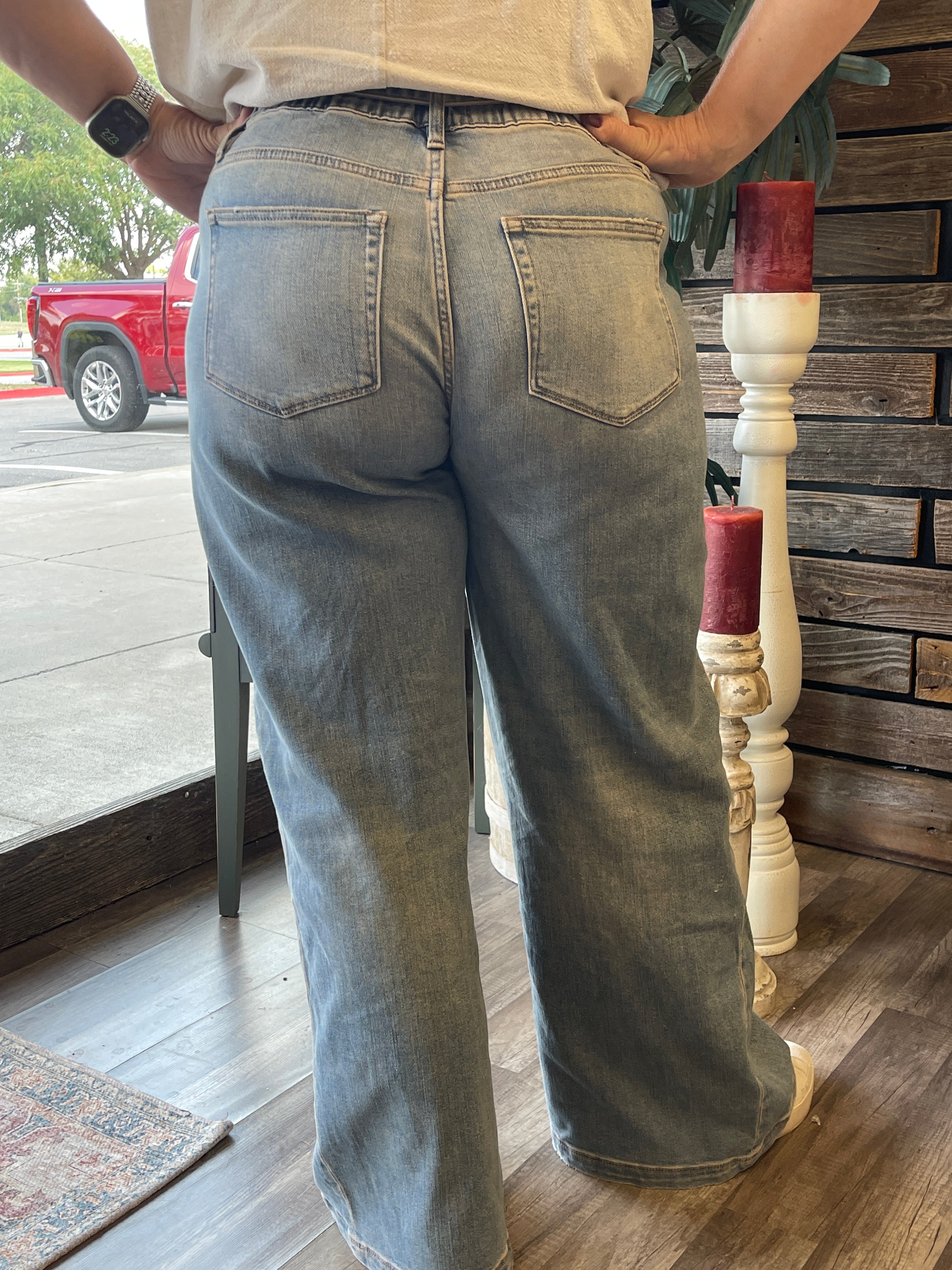 Some days just call for easy comfort, and these jeans deliver it with style to spare. The Easy Street Wide Jeans feature a high-rise fit with a relaxed, baggy leg that feels as effortless as a Saturday morning. The elastic tie waistband gives them that laid-back, pull-on ease while still flattering your shape, and the front patch pockets add just the right touch of casual charm.