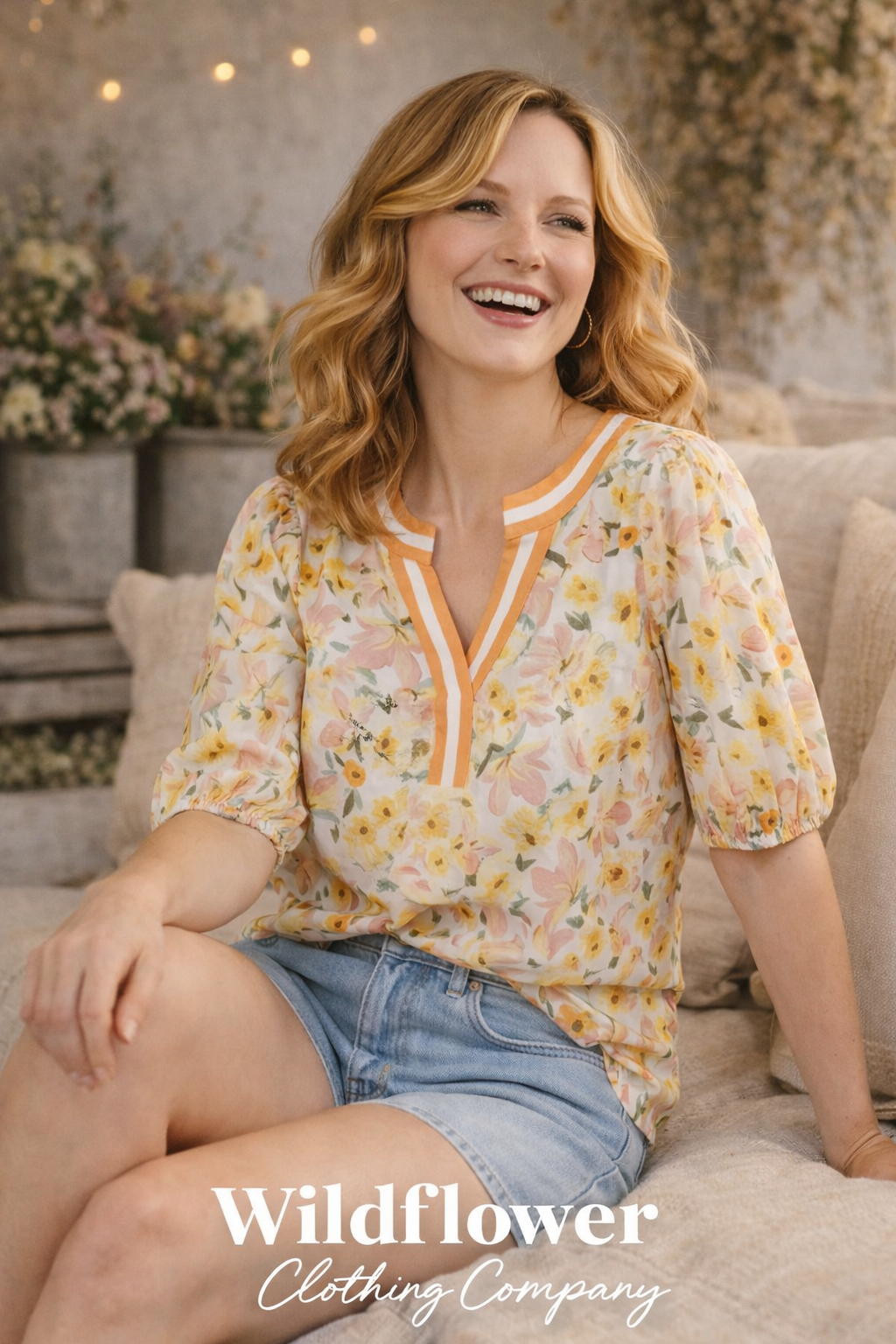 The floral print keeps it fresh and feminine, and the contrast trim around the split neckline gives it a little extra detail without making it fussy. It’s an easy piece to tuck into denim or wear loose with shorts when the weather warms up.