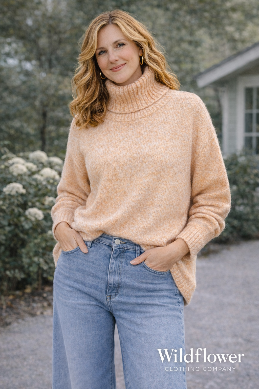 Soft knit turtleneck sweater with a relaxed, comfortable fit